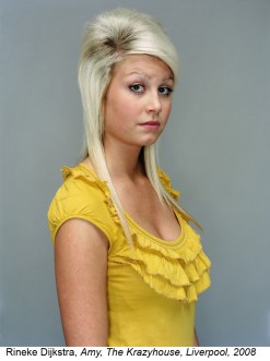But one beef I have with Dijkstra, and certain other art photographers, is that she seems to feel that “serious” portraiture has to be minimalist and glum. Clearly this has to do with the church-state divide between amateur and professional photography, in which the prevailing wisdom is that smiling is for cheesy snapshots, whereas a true, insightful portrait requires the subject to look as if she’s contemplating Cicero or has a stomach ache. Sometimes this results in a wonderful portrait. At other times the thoughtfulness yields to a blank detachment. If a Martian came down to Earth and was asked—based on a walk-through of Chelsea galleries–to describe the human condition, I fear he’d report that we’re a solemn, humorless race.