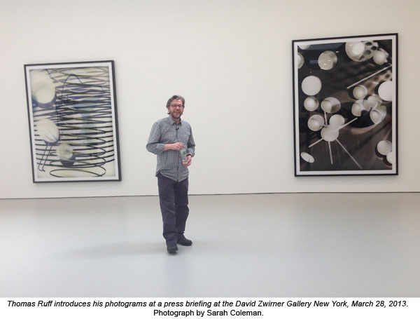 ManRay_RuffIn an interview after the press briefing, Ruff–who, thankfully, doesn’t call his images Ruffographs–told me he created this work because of his love of photograms. “In the 1920s this was a big thing, bringing abstraction into photography,” he said. “It was a challenge to see if I could make the next generation.”