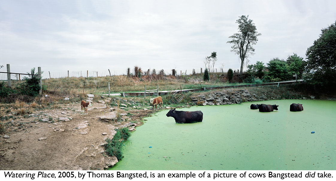 There’s plenty more in the book, too, including Sylvia Plachy ’s moving memory of seeing a large, dust-covered man walking robotically uptown on 9/11, and being unable to photograph him. “Diane Arbus would have done it,” she remarks ruefully. And Thomas Bangsted writes compellingly about an eerie scene he came upon in Denmark, a dead cow with a gas-bloated belly, its calf moaning nearby and a cat slinking by with a rat hanging from its mouth. “The sight was like a picture postcard that had taken a wrong turn—a case in point of dread in near-perfect equilibrium with the banality of bright daylight,” he writes. In this case, Bangsted didn’t actively decide not to take a photograph—he’d left his camera behind, he told me—but the scene remained etched in his memory, his evocation of it an example of Steacy’s belief that “a photograph can exist in words.”
