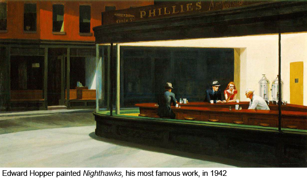 Many city dwellers live this way. The proximity of strangers in the city, and the voyeuristic impulses it brings out in people, have given rise to some memorable works of art. The great cultural touchstone is, of course, Hitchcock’s Rear Window , but other works in the genre include Edward Hopper’s Nighthawks , Michael Wolf’s The Transparent City and Merry Alpern’s Dirty Windows , an uber-voyeuristic study of the goings-on in a neighboring brothel’s window.