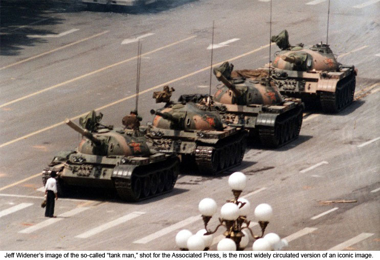 —but occasionally, the camera records a moment of heroism. That was the case with “tank man,” the notorious photograph of the young man who stood in front of a line of tanks in Tiananmen Square in 1989, symbolically taking on the might of the Chinese army.
