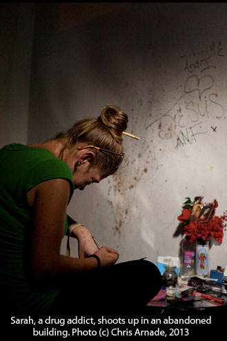 So no, the story isn’t about him. Still, Arnade knows, the “quitting Wall Street to photograph junkies” line is intriguing, so he’s not completely averse to using it to publicize his work. “It’s a bit of a cheap story, but I also know it’s a gimmick that gains attention.”