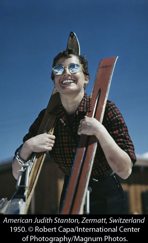 The “sullying of a legend” possibility is more persuasive. Some of Capa’s color subjects are pretty lightweight—pictures of ski resorts and movie sets—and as curator Cynthia Young writes in the exhibition catalog, by the 1960s, “[Robert] Capa was a standard bearer of Cornell Capa’s concept of a concerned photographer, embodying truth, commitment and engagement. His color subjects had no place in that vision.”