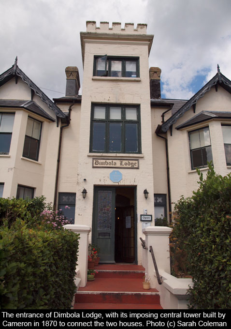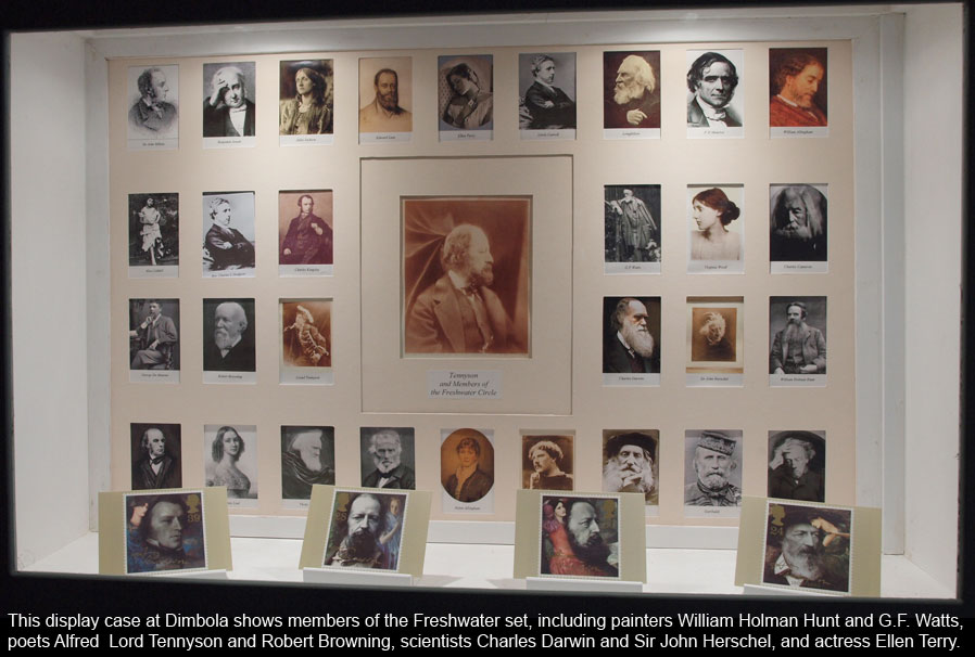 Cameron first came to the Isle of Wight in 1855, when she visited Farringford House , the Freshwater home of poet Alfred Lord Tennyson . She fell in love with the location and in 1860, when her husband and son were away inspecting their tea plantations in what was then Ceylon (now Sri Lanka), she impulsively bought two adjoining cottages from a local sailor-carpenter: one to live in and the other to accommodate guests. (Dimbola is named for Dimbula, the family’s Ceylon plantation.) In 1870, she built a distinctive tower to connect the two houses and make the house look more imposing to visitors.