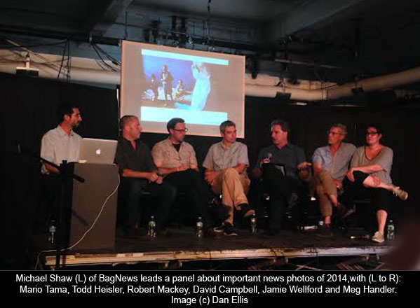 Meanwhile, a poignant portrait of a young girl protesting in Ferguson, Missouri , by Scott Olson, was at the heart of a discussion of visual symbolism at the panel BagNewsSalon: Reading Key Photos of 2014 on the last day of the festival. Assembled by the excellent website BagNews , the panel looked at seven important news images and analyzed their contents. The panelists agreed that the Ferguson image had been effective in putting a face on the story and counterpointing some of the violent, dramatic images from the city. Another photograph, by John Moore, of a doctor discussing Ebola in Liberia, prompted a discussion about the place of aesthetics and editorializations in news imagery. It was generally agreed that, while objectivity might be possible, photographers shouldn’t run away from the aesthetic nature of their craft. However, said New York Times photographer Todd Heisler (whose images are often incredibly beautiful), “content always wins over aesthetics at a newspaper.”