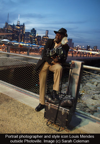 , known for his instant portraits shot on a reconditioned 1930s Speed Graphic camera. Mendes—who took my portrait earlier this year outside the Leica Gallery—was plying his trade outside the Photoville gate, but cut such a fine figure that I asked to turn the tables on him, and got this shot.