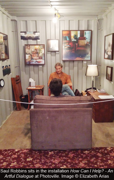Clearly, Robbins is not your average photographer. His most recent project, How Can I Help? – An Artful Dialogue , is unique, taking the concept of the “concerned photographer” to a whole new level. Rather than simply consuming images on a wall, viewers are asked to consider their own vulnerabilities. Sitting among Robbins’ photographs of therapists’ offices, willing participants enter into what Robbins calls an “earnest, heartfelt dialogue” about their problems, with the aim of creating a connection and fostering a sense of community.