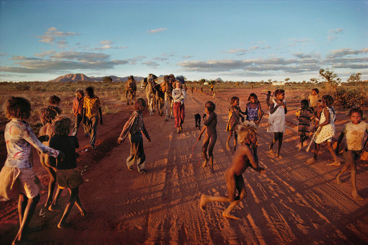 The children of Docker River greet Robyn (“the camel lady”) with great excitement. © 2014 Rick Smolan, Against All Odds Productions II