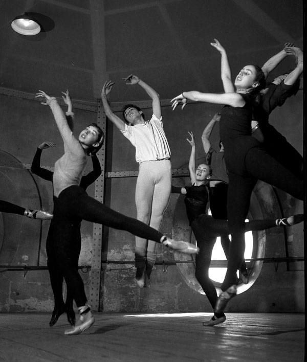 As for that controversy over The Kiss —well, it’s nice to see here that Doisneau had a lifelong preoccupation with public displays of affection. The earliest example in the book shows a woman holding a sleeping man as they take refuge in the Paris metro during a bomb alert—shot in 1942, eight years before The Kiss. And there are plenty more, especially of dancing couples—including what must have been a bold image, in 1951, of a white woman and a black man dancing in a bebop club.