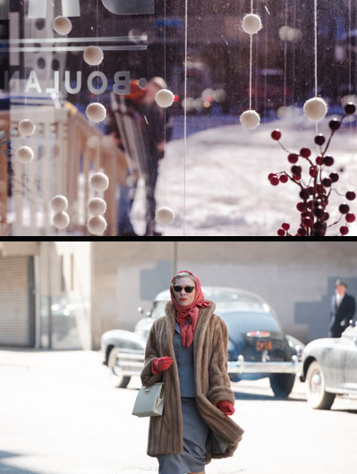 Similar color palette: An image by Saul Leiter (left) and a still from Carol (right).