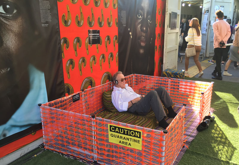 A viewer listens to radio broadcasts from West Africa in the Open Society’s Ebola Through the Lens. Photo (c) Sarah Coleman